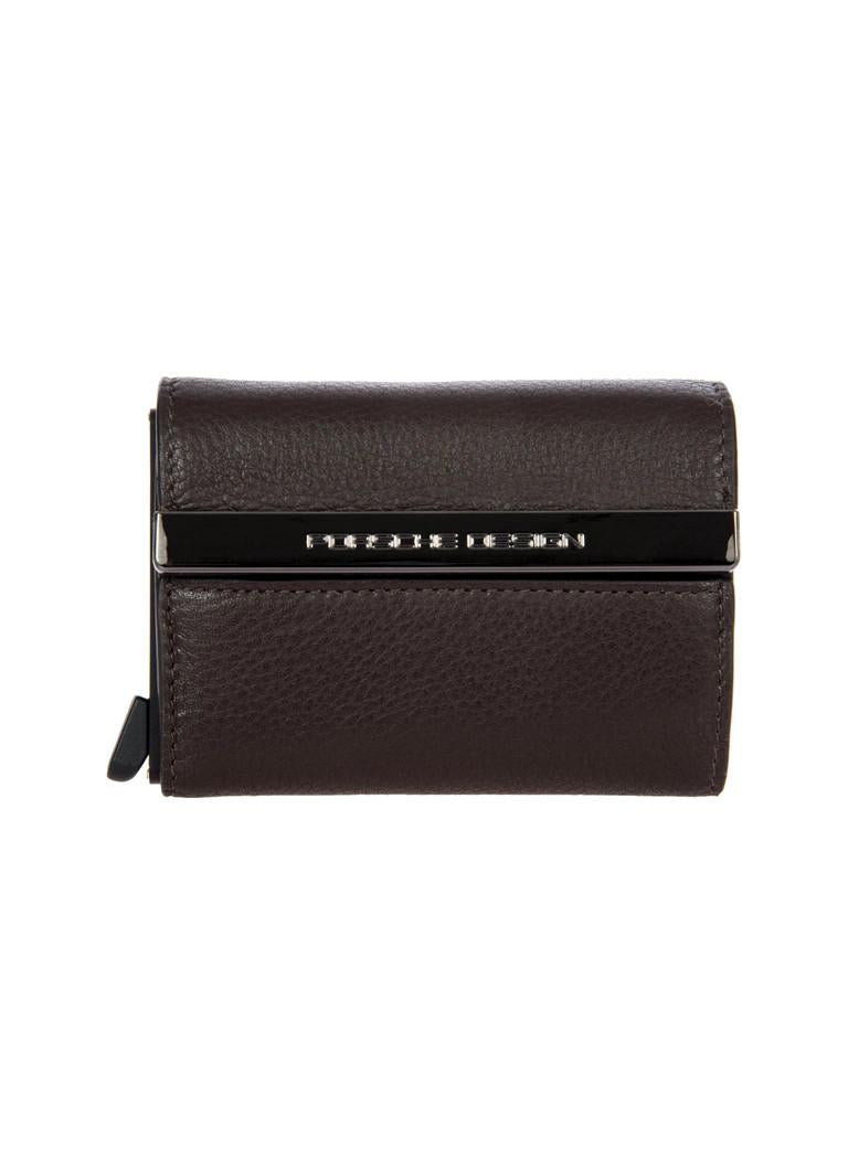 Versione Porsche Design di un portacarte Secrid. Alloggiamento in metallo con funzione pop-up per un massimo di quattro carte, custodia in pelle con ulteriore spazio per riporre sei carte aggiuntive, scomparto per banconote con ausilio per la piegatura, staffa in metallo con scritta Porsche Design.
