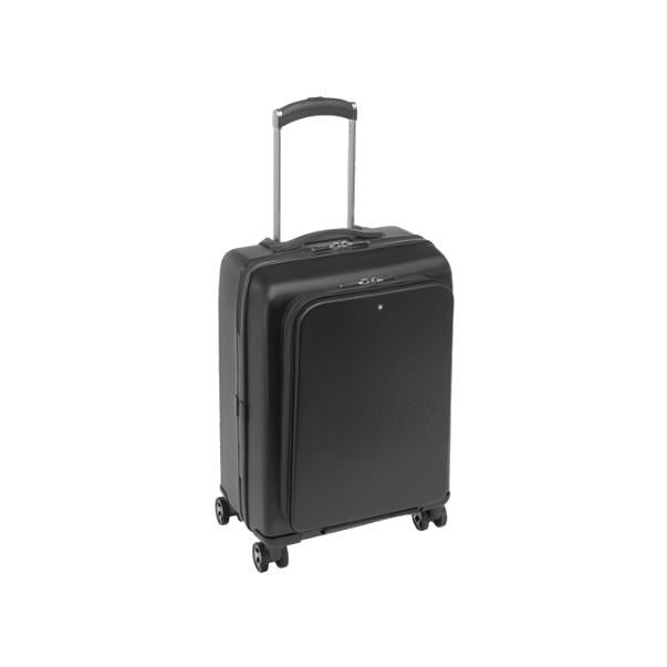 Trolley Montblanc della linea Nightflight, realizzato in policarbonato di colore nero, 4 ruote silenziose in alluminio, manico stabile a 3 lunghezze con doppio sistema di blocco, comoda impugnatura superiore in pelle, cursori delle cerniere in caucciù, targhetta identificativa per bagaglio. All'interno troviamo un'ampio scomparto principale per abiti con cinghie regolabili e 3 astucci amovibili, scomparto con 1 tasca con cerniera, 2 tasche trasparenti. Le misure sono 36 x 53 x 26 cm.
