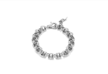 Un gioco di legami infiniti che celebra la bellezza dell'argento 925 nelle sue forme più eleganti. Il bracciale Anellini unisce con maestria la classicità e il minimalismo contemporaneo, creando un gioiello versatile e raffinato.