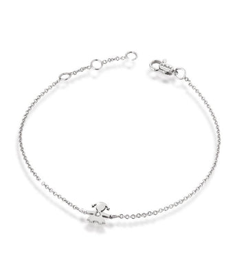 Bracciale in oro bianco 18kt, catena maglia rolò con la possibilità di regolare la lunghezza e moschettone logato. Il centrale a forma di femminuccia è impreziosita da un diamante taglio brillante di ct. 0,03 colore G qualità VS.