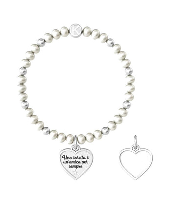 Bracciale Kidult in acciaio e pietre con incisione, Una sorella è un 'amica per sempre.