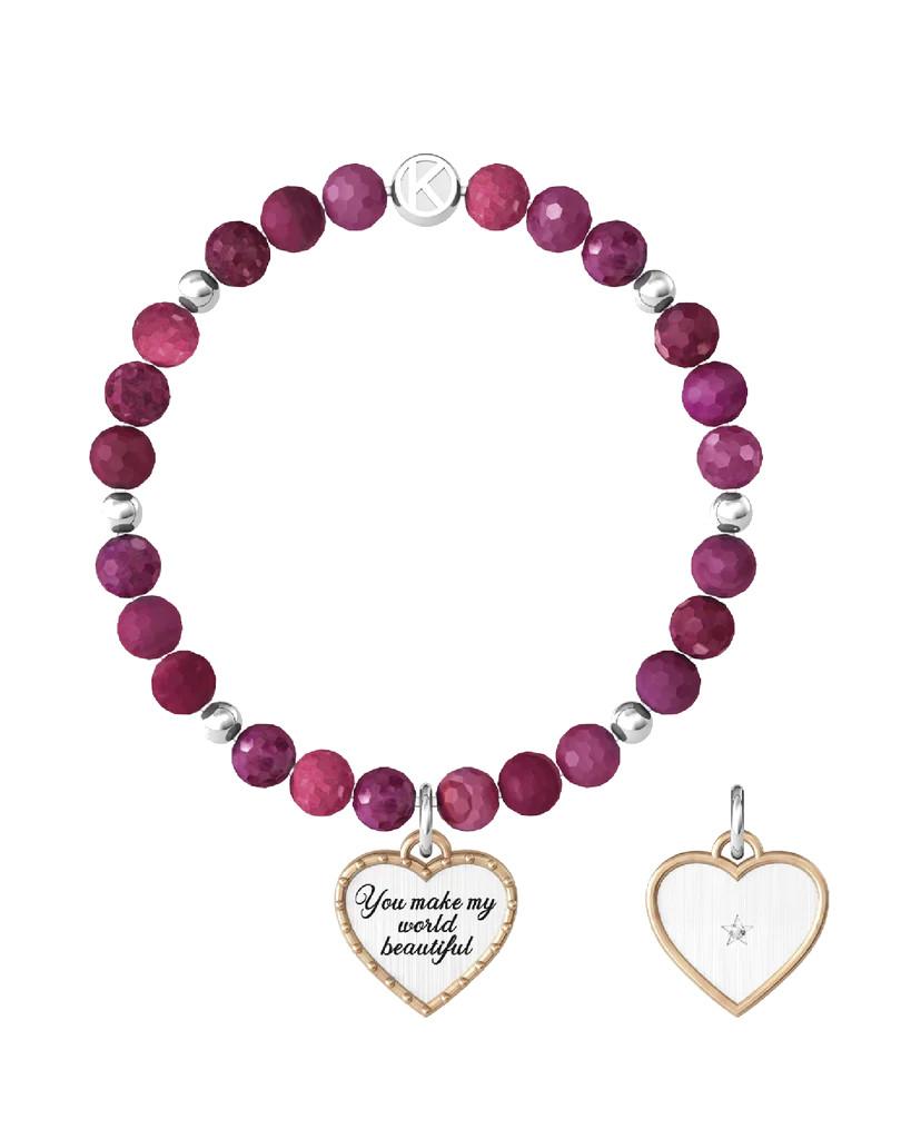 Bracciale Kidult in acciaio e pietre con incisione, You make my world beautiful.