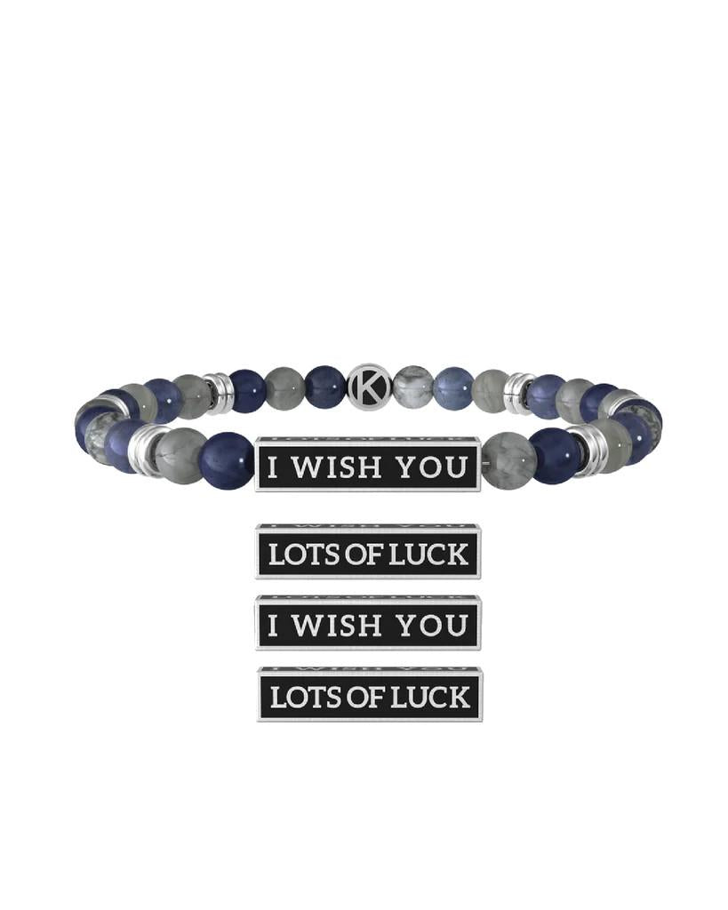 Bracciale Kidult in acciaio e pietre con incisione, I wish you lots of luck.