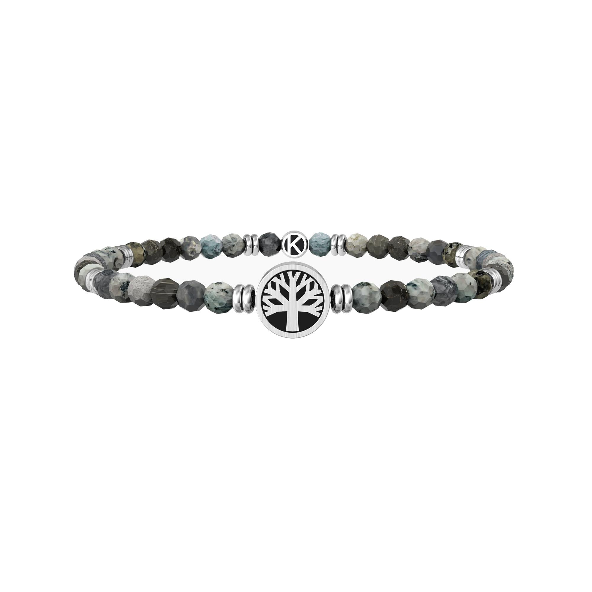 Bracciale Kidult elastico uomo con agata grigia e albero della vita