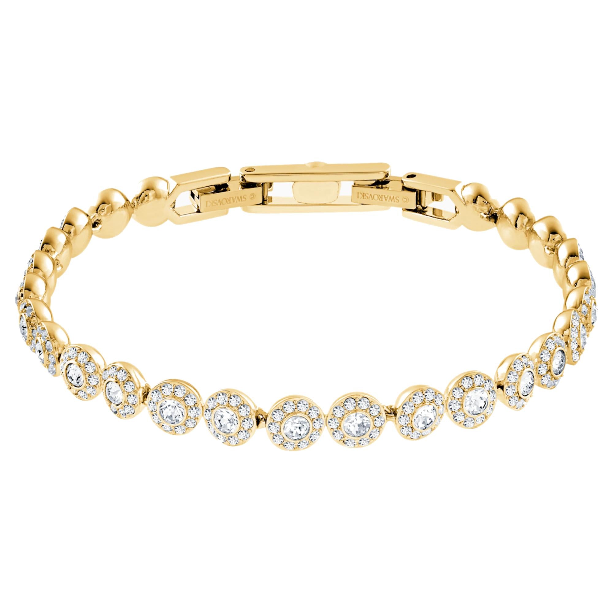 Un classico intramontabile. Questo bracciale placcato nella tonalità oro presenta una fila di Clear Crystal rotondi, ciascuno incorniciato da uno scintillante pavé di Clear Crystal. Abbinandosi perfettamente agli altri accessori della collezione Angelic, è perfetto come idea regalo.
