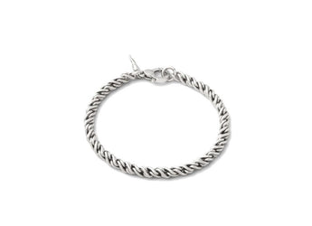 Classica e rivisitata, questa catena treccia in argento si trasforma in un bracciale sobrio e comodissimo da indossare. Tutta l'eleganza e la luminosità di un metallo nobile che non invecchia mai. Fatto a mano in azienda.