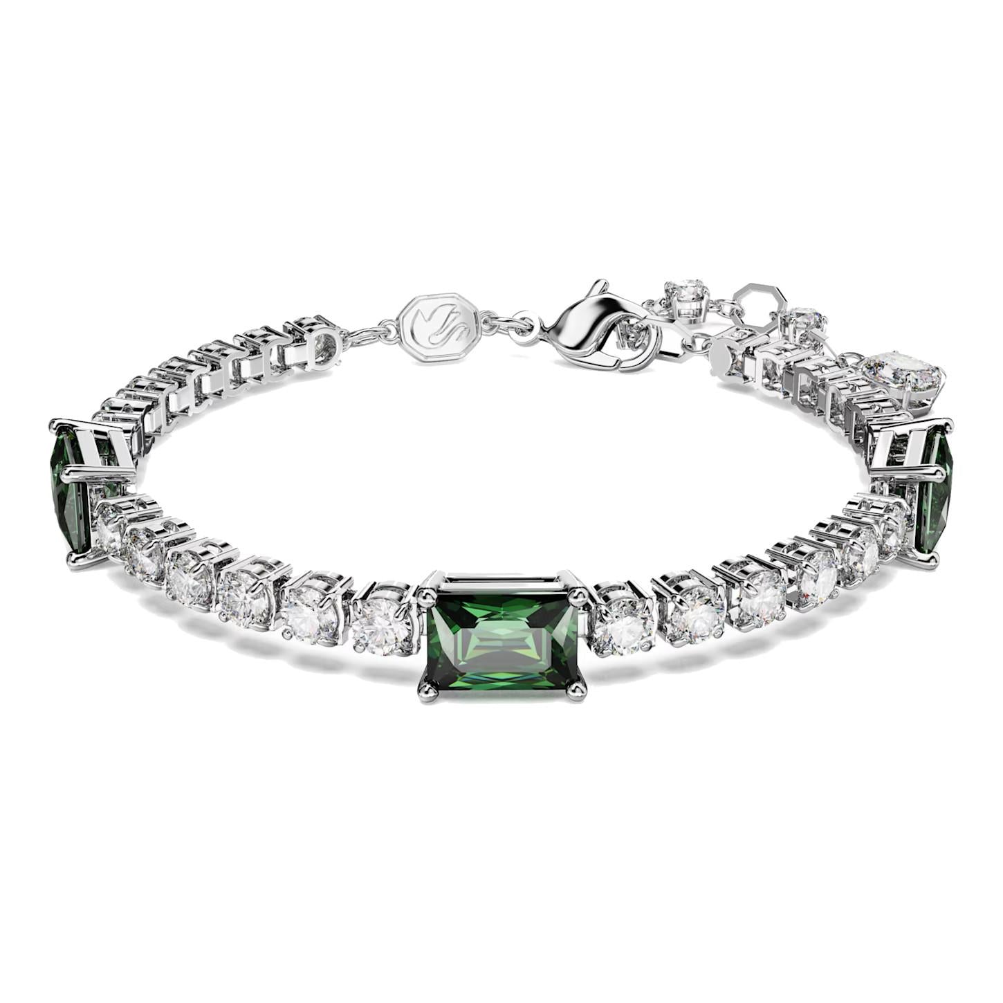 Braccialetto Swarovski Matrix Tennis Taglio misto, Verde, Placcato rodio