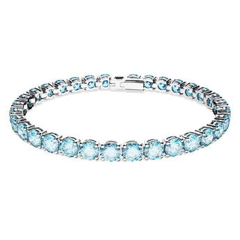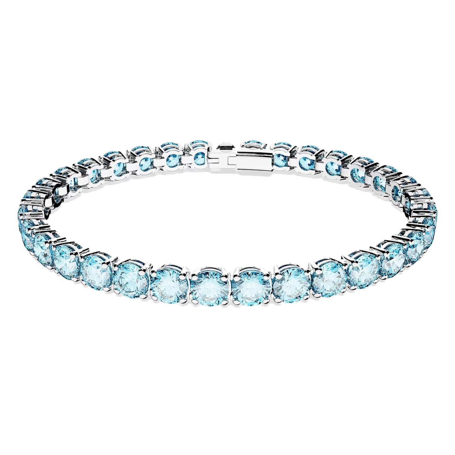 Braccialetto Swarovski Matrix Tennis Taglio tondo, Medio, Blu, Placcato rodio (Misura M)