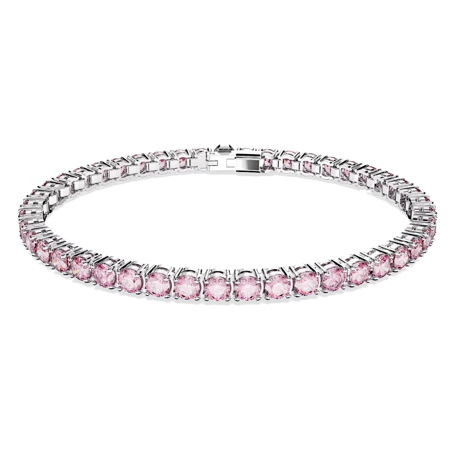 Braccialetto Swarovski Matrix Tennis Taglio tondo, Piccolo, Rosa, Placcato rodio (Taglia XL)