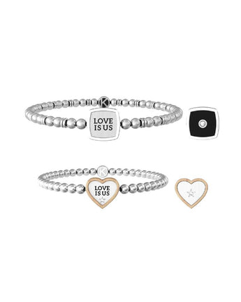 Bracciali Kidult in acciaio uno uomo e uno donna con incisione, Love is us.