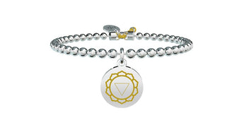 Sole luminoso, centro del fuoco, la tua fiamma scalda senza bruciare. Un'energia che fa sentire liberi e in armonia con il mondo, la bellezza di sentirsi forti, brillanti, invincibili. Bangle con filo armonico, sfere in acciaio e ciondolo III Chakra giallo. • Smalto giallo sul ciondolo • Chiusura con cordino • Misura regolabile, diametro da 5,5 a 6,5 cm • Materiale: Acciaio 316L, Smalto • Designed by Kidult in Italy
