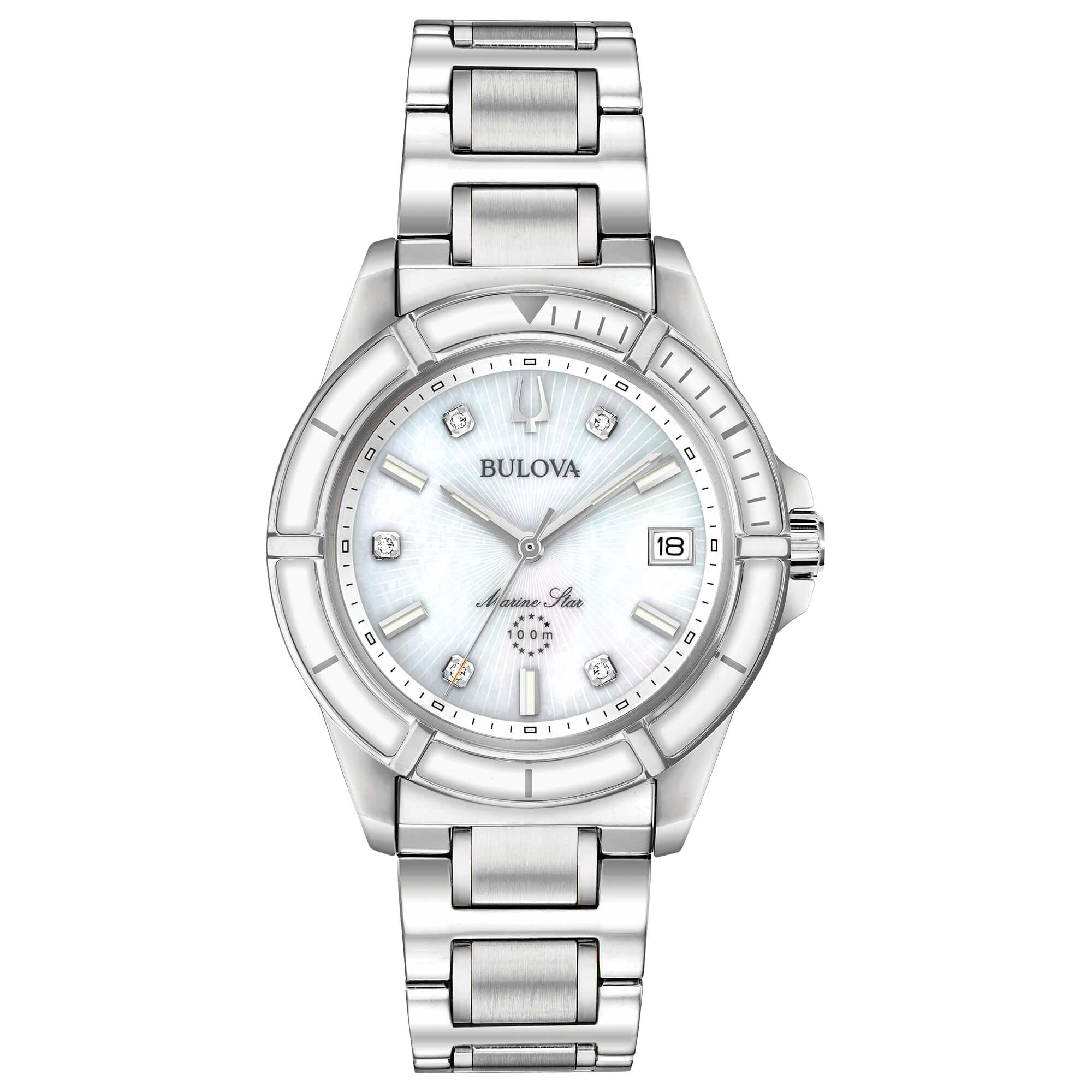 Orologio Bulova da donna, cassa in acciaio inossidabile con un diametro di 34 mm e uno spessore di 9 mm. Il quadrante è in madreperla, il vetro minerale. Il movimento è al quarzo con funzione di solo tempo. Il bracciale è in acciaio inossidabile. La resistenza all'acqua è di 10 bar.