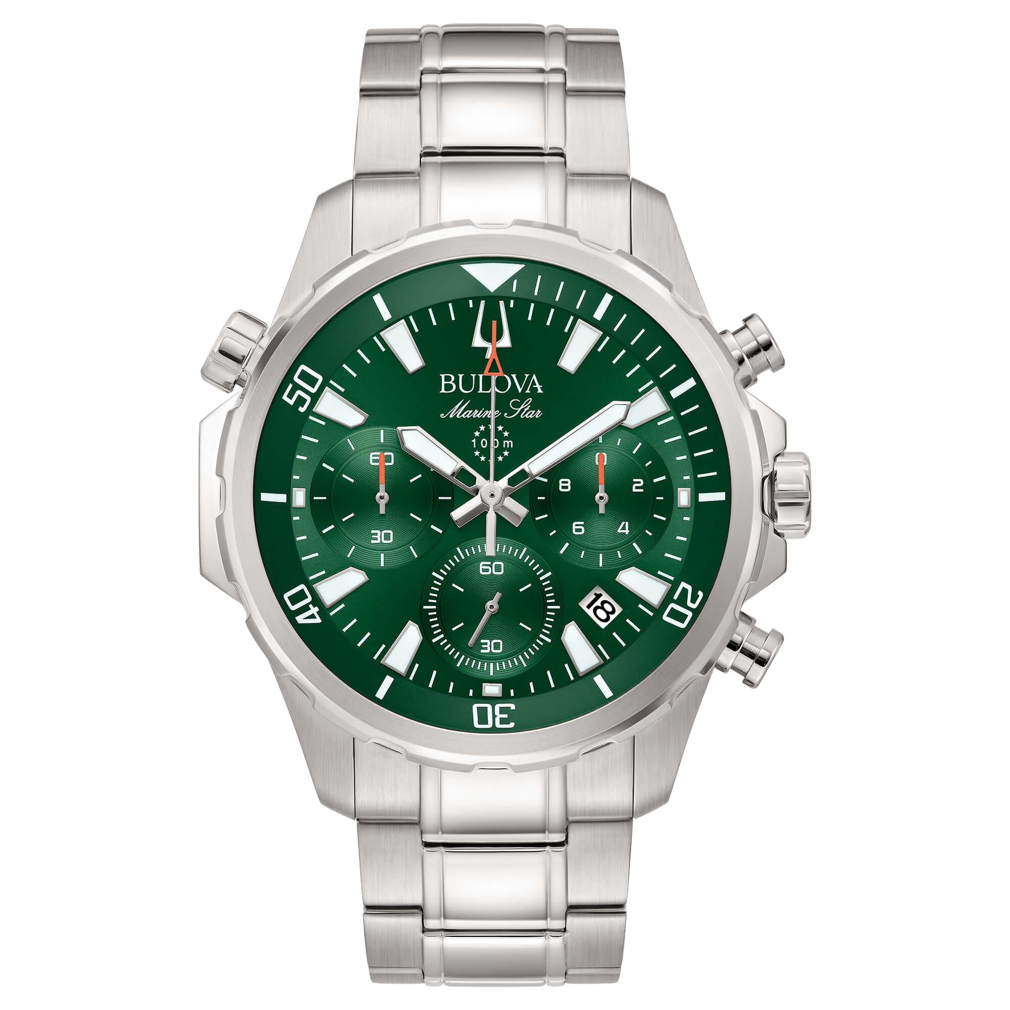 L'orologio Bulova Marine Star Crono è una scelta di qualità ed eleganza. Realizzato in acciaio di alta qualità con un fondello a vite e un'impermeabilità di 10 Bar, questo orologio è resistente e identifica la tua classe ed estetica. Con un quadrante analogico di colore verde e una funzione cronografo, questo orologio è l'ideale per le situazioni formali e informali.
