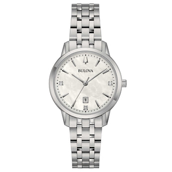L'orologio Bulova Sutton Lady rappresenta l'equilibrio perfetto tra stile e funzionalità. Con la sua funzione Solotempo e il movimento al quarzo, potrai sempre essere puntuale. La cassa in acciaio e il vetro minerale garantiscono resistenza e durata, mentre il quadrante color madreperla aggiunge un tocco di eleganza. Impermeabile e leggero, è l'accessorio ideale per ogni occasione.
