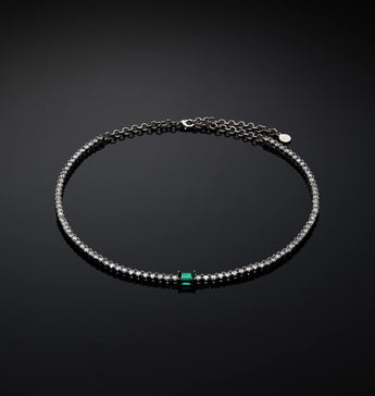 Girocollo con zirconi bianchi placcati in argento e pietra centrale verde smeraldo.