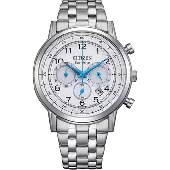 Al suo interno batte un cuore Eco-Drive, la tecnologia esclusiva di Citizen che alimenta l'orologio con qualsiasi fonte di luce, naturale o artificiale, eliminando la necessità di sostituire la batteria. La cassa in acciaio da 42 mm, abbinata al bracciale in acciaio argentato con chiusura deployante, conferisce un look professionale e al tempo stesso sportivo.