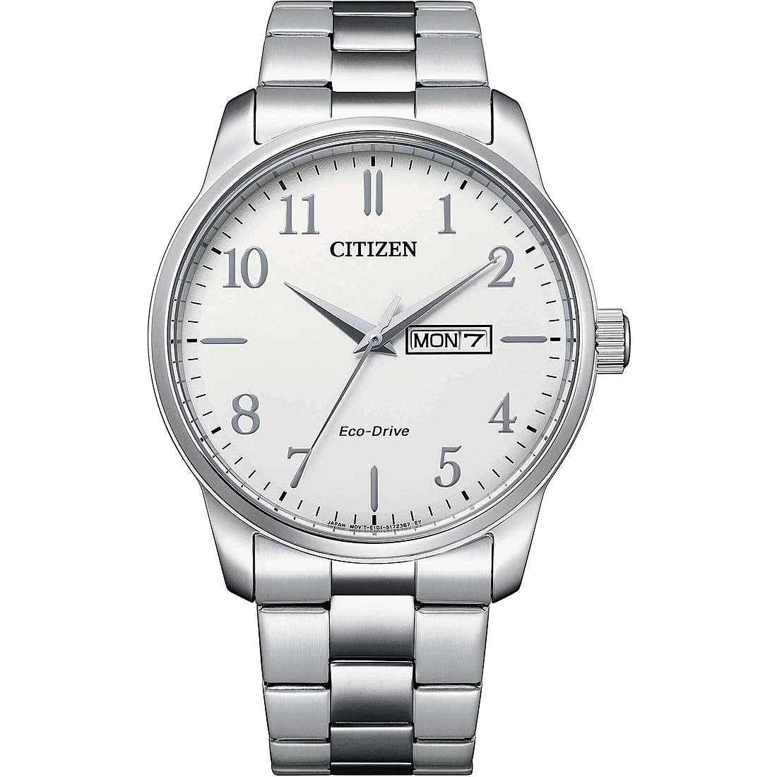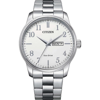 Orologio da uomo Citizen della linea classic, cassa e bracciale in acciaio inossidabile, vetro minerale e quadrante bianco con numeri arabi. Il meccanismo è al quarzo eco drive con carica solare, la riserva di carica è di 6 mesi. La cassa ha un diametro di 41mm e una resistenza all'acqua di 10 atm.