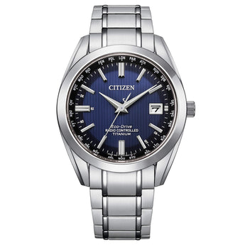 Orologio Citizen H145, con cassa e bracciale in supe titanio. Il movimento è Eco Drive (a carica luce) con riserva di carica di 2 anni e allarme carica insufficiente. Funzione di risparmio energetico, con funzione di radiocontrollo a 5 canali: ricezione segnale orario USA, Europa, Giappone, Cina. World timer con orario di 26 città del mondo. Antimagnetico. Funzione di correzione della posizione delle lancette. Calendario perpetuo. Funzione di protezione da shock. Vetro in zaffiro antigraffio.