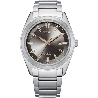 Orologio Citizen della linea supertitanio, referenza AW1640-83H, diametro della cassa 41mm. La cassa e il bracciale di questo orologio sono in Super Titanio che rende l'orologio più leggero del 40% rispetto all'acciaio e 5 volte più resistente all'abrasione, il suo movimento oltre a fornire l'indicazione di ora e data ha la funzione Eco-Drive di ricarica solare a luce infinita. Ciò vuol dire che la batteria interna si ricarica quando l'orologio è esposto ad una fonte di luce, grazie alla cella fotovoltaica nascosta sotto il quadrante. In caso di assenza di luce può comunque continuare a funzionare per circa 6 mesi.