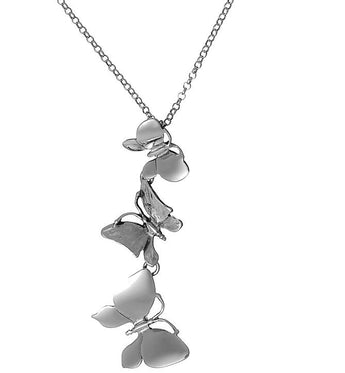 Collana Giovanni Raspini con farfalle, realizzata in argento 925, la lunghezza è di 45 cm più il pendente di 6,5 cm. La chiusura è a moschettone.