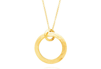 Un gioiello che cattura lo sguardo grazie alla sua intensa matericità e alla straordinaria capacità di riflettere la luce. Realizzato in lastra d'argento 925 martellata a mano e rifinito con un prezioso bagno d'oro 18 kt, questo pendente è un autentico omaggio al design contemporaneo.