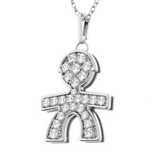 Collana in oro bianco 18kt con il pendente a forma di maschietto, tutto coperto da diamanti taglio brillante.