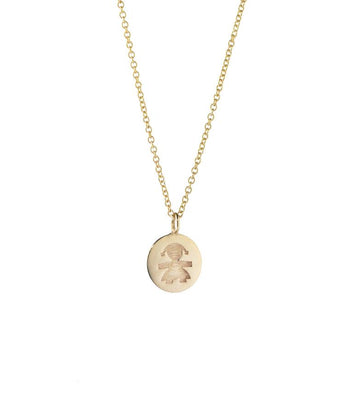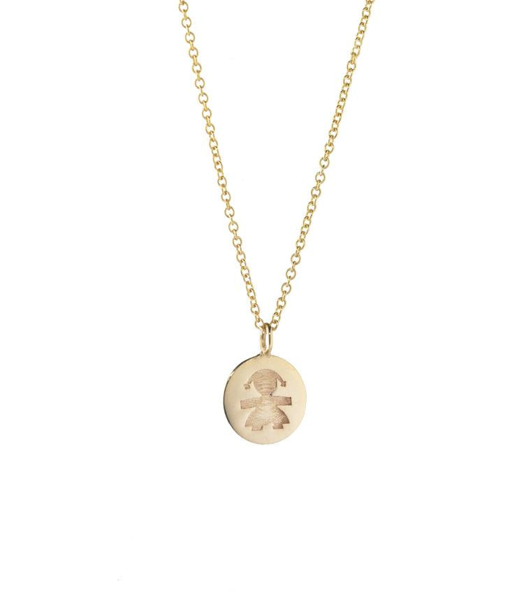 Collana in oro giallo 9kt con pendente a forma di pepita con inciso la sagoma della femminuccia.
