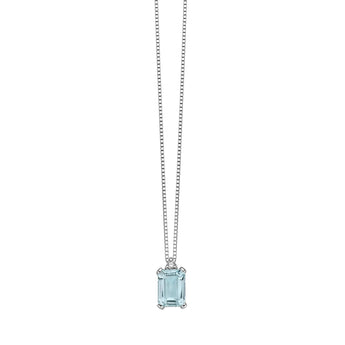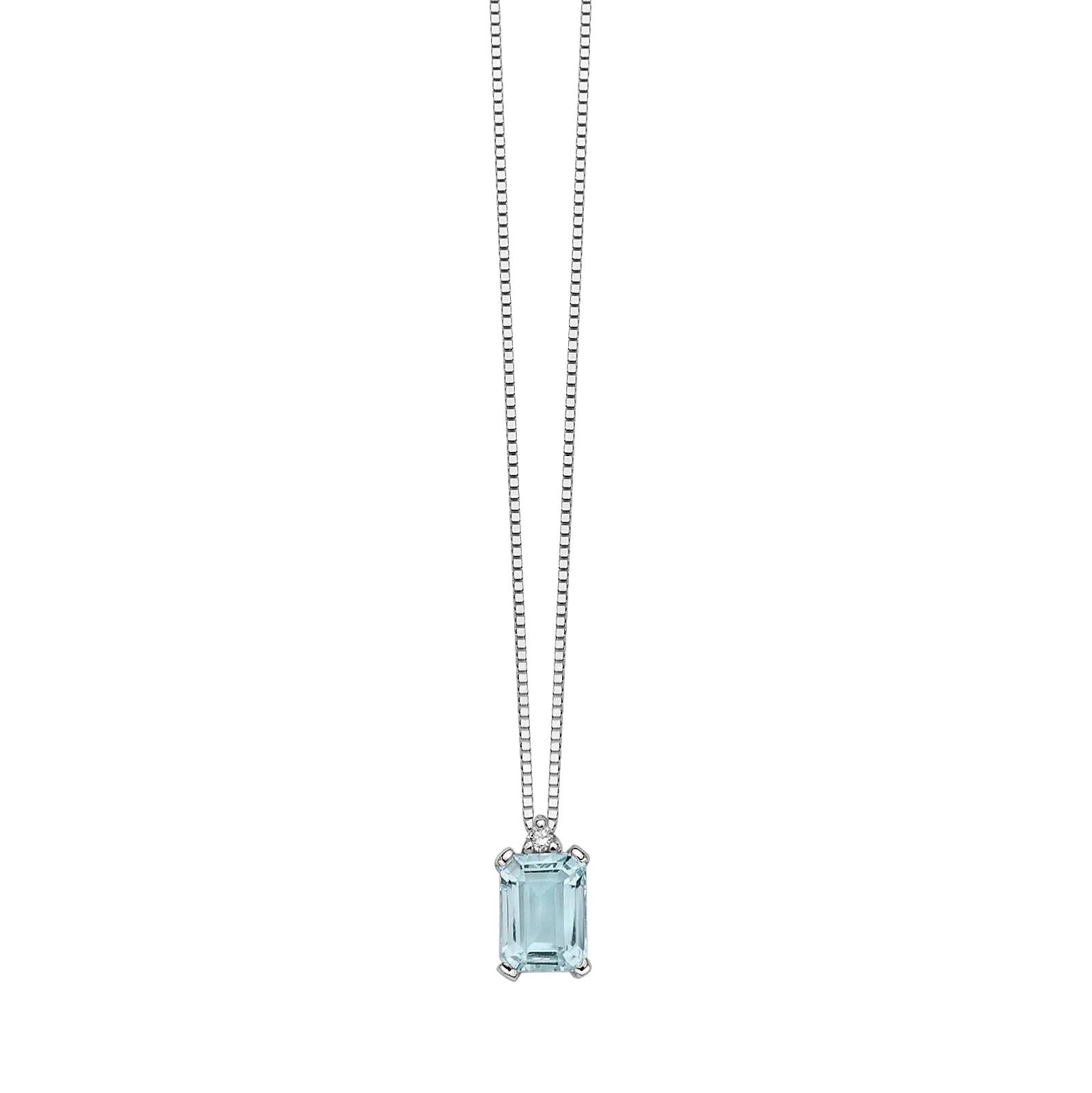 Girocollo Donnaoro realizzato in oro bianco 18 kt. catena veneziana diamantata. Centrale con acquamarina ottagonale di ct. 0,87 non trattata. Diamante di ct.0,02 qualità SI colore G.