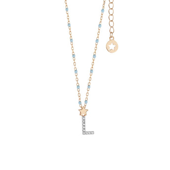 Girocollo in Argento 925% con trattamento di doratura rosè e smalto azzurro, zirconi bianchi