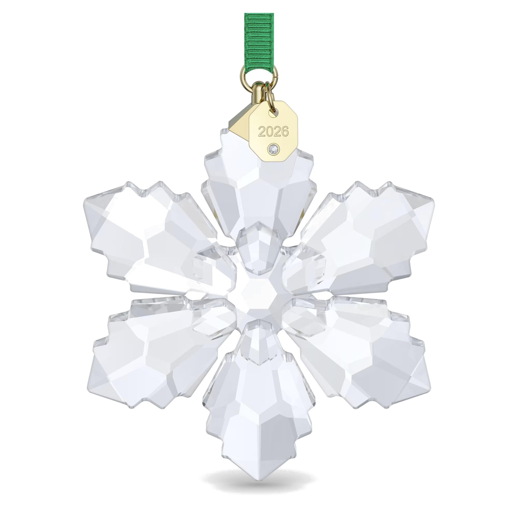 L'apprezzata tradizione di Decorazioni Annual Edition continua nel 2026 con la creazione a forma di fiocco di neve geometrico. Con il suo taglio magistrale a 192 sfaccettature, il design trasparente è sospeso su un nastro in gros-grain verde e presenta una targhetta in metallo placcato in tonalità oro, che reca inciso l'anno ed è impreziosita da un piccolo chaton. Usa questa radiosa decorazione per addobbare un albero per le feste o appendila a una finestra per festeggiare la gioia della natura. Oggetto decorativo. Non è un giocattolo. Non adatto a bambini di età inferiore ai 15 anni.