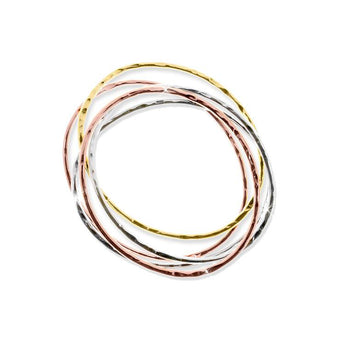 Bracciale Unoaerre in bronzo a 5 fili. Placcato oro giallo, oro rosa, rodio. Diametro interno 7 Cm.