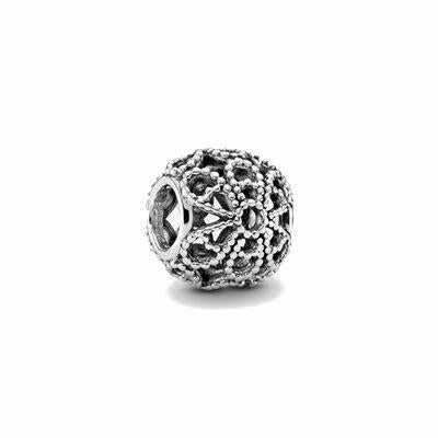 Charm con lavorazione openwork. Il gioiello, leggerissimo da indossare, è decorato da deliziosi fiori ornati da sfere in Argento Sterling 925. Rifinito a mano e creato per i bracciali Pandora Moments.