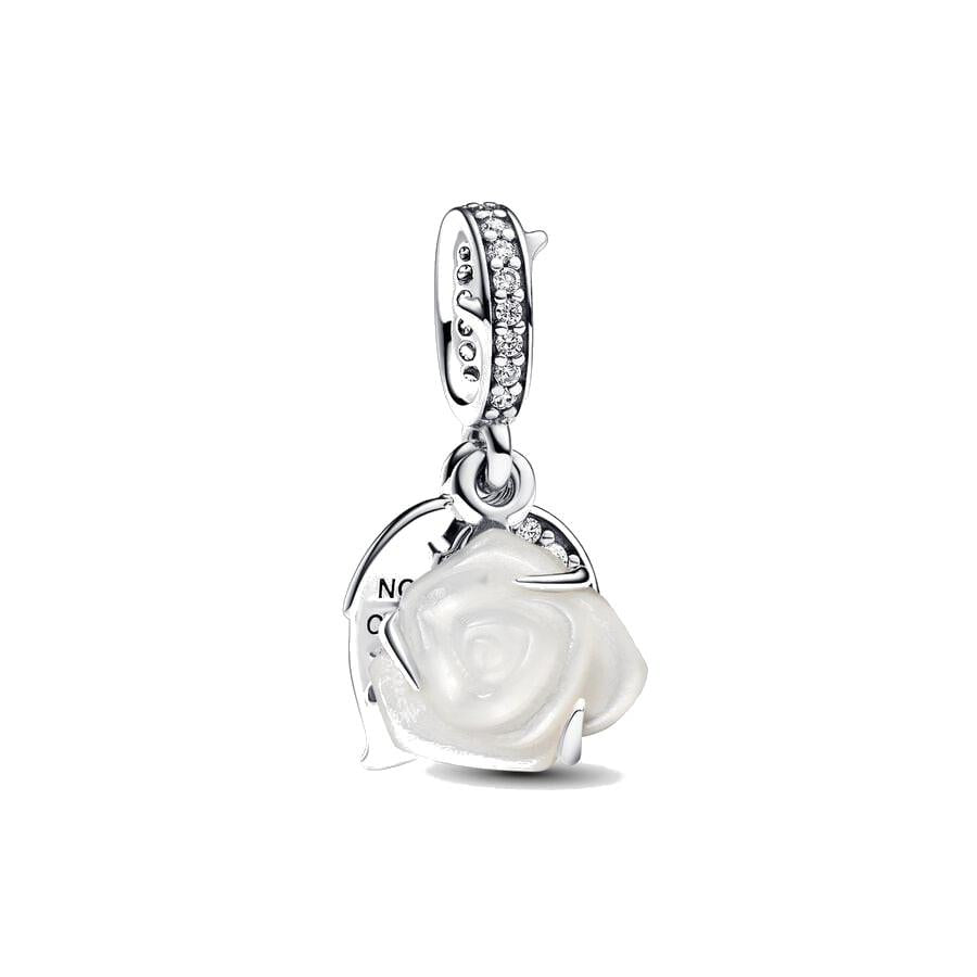 Aggiungi un tocco di eleganza e significato al tuo look con il Charm Pendente Rosa Bianca. La madreperla bianca forma una rosa in fiore, adornata da pietre di zirconia cubica che donano luminosità. L'incisione "NOTHING COMPARES TO YOU" aggiunge un tocco romantico. Ideale come regalo per una persona speciale, dalla collezione Moments.