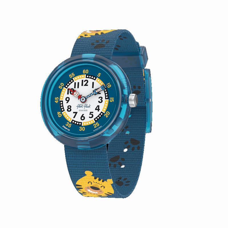 Perfetto per gli amanti dei grandi felini, PAWSOME è un orologio svizzero per bambini con la cassa resistente ad acqua e urti.