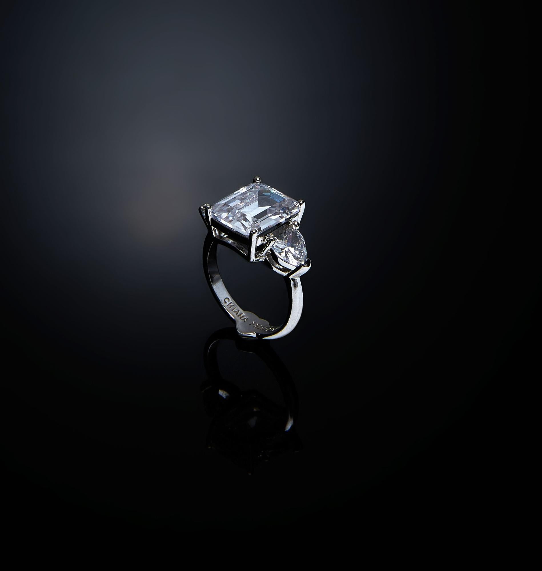 Anello Chiara Ferragni Brand modello trilogy con pietra centrale taglio pricess e pietre laterali taglio cuore.