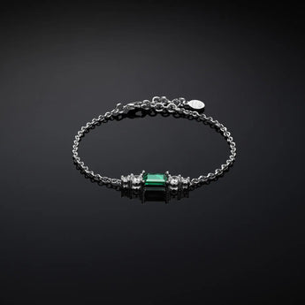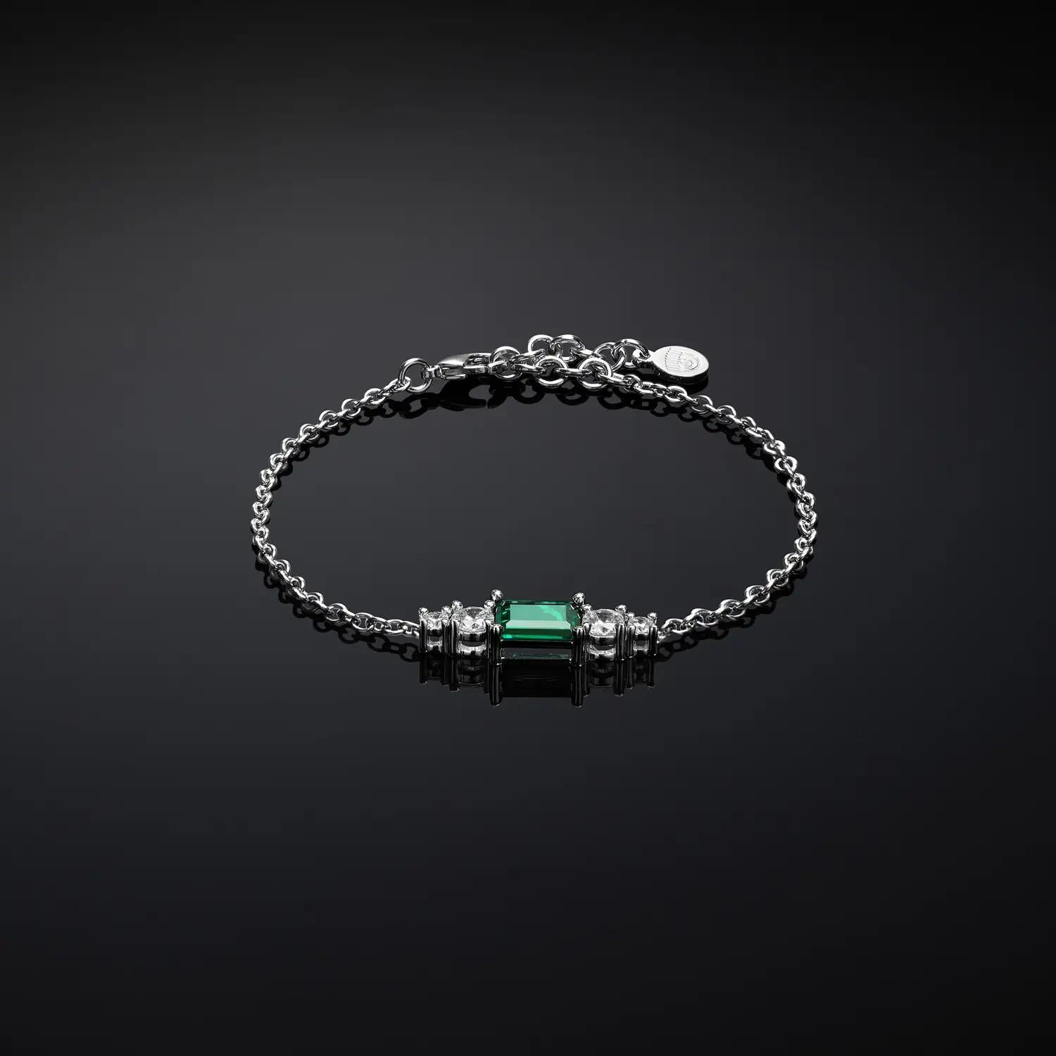 Esclusivo bracciale Collezione Emerald con dettagli in acciaio e pregiati zirconi bianchi e zircone verde smeraldo centrale. Raffinato ed elegante, questo bracciale dona un tocco di luce e colore al tuo look quotidiano. Un accessorio unico per un stile sofisticato e alla moda.