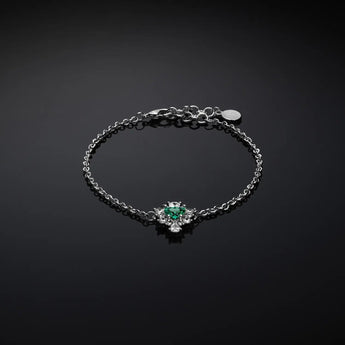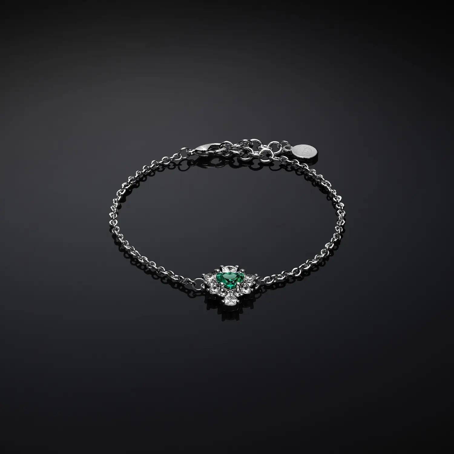 Questo elegante Bracciale da Donna è perfetto per aggiungere un tocco di lusso e romanticismo al tuo look. Con una placcatura di PVD rodio silver, è caratterizzato da uno zircone verde al centro con il taglio a cuore, circondato da zirconi bianchi scintillanti. Immergiti in un mondo di stile e bellezza con questo bellissimo bracciale.