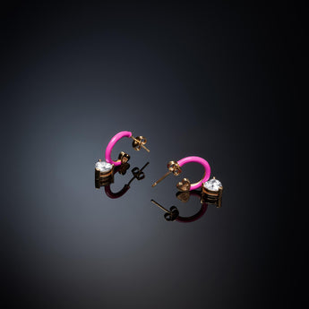 Orecchini Chiara Ferragni Brand collezione Love Parade, realizzati in metallo placcato in oro 18 kt, smalto di colore rosa e uno zircone taglio cuore trasparente.