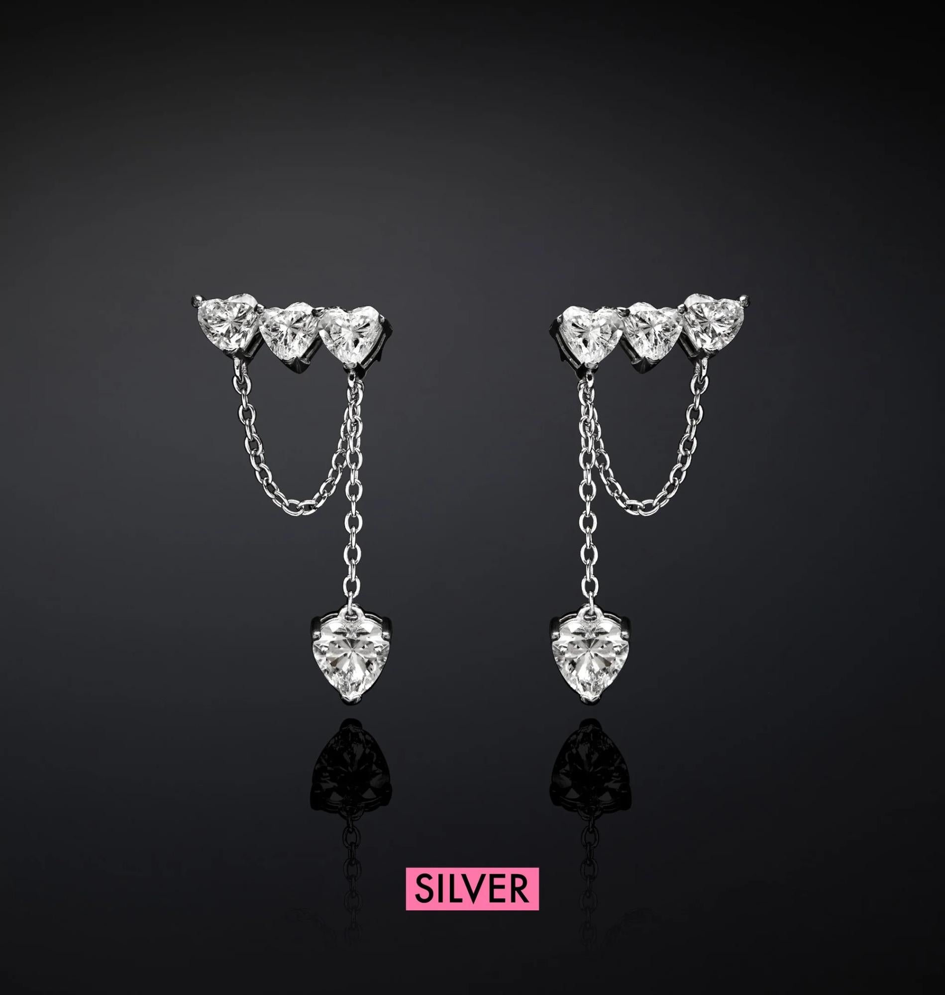 Orecchini realizzati in argento 925 con zirconi bianchi a forma di cuore.