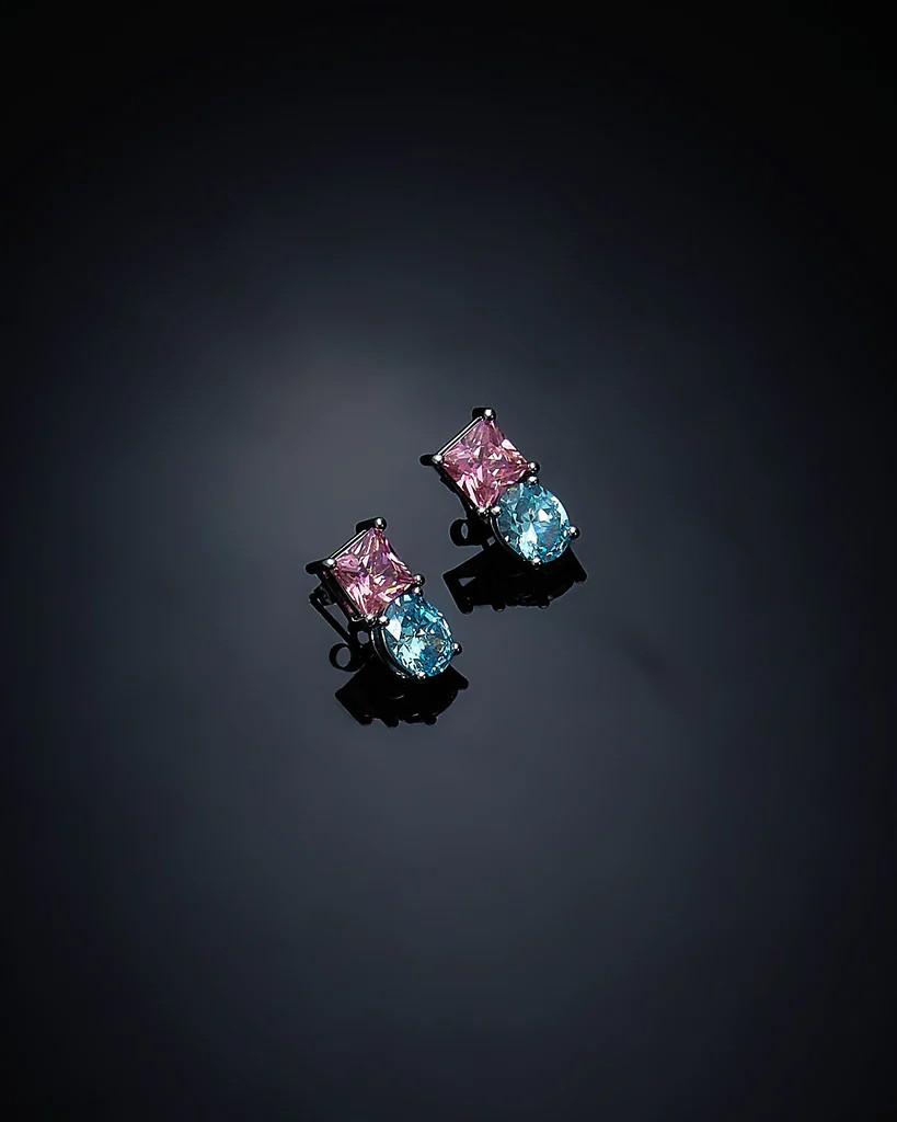 Orecchini Chiara Ferragni Brand della collezione Princess Rainbow, placcati al rodio con pietre colore rosa e azzurro. Chiusura a farfalla.