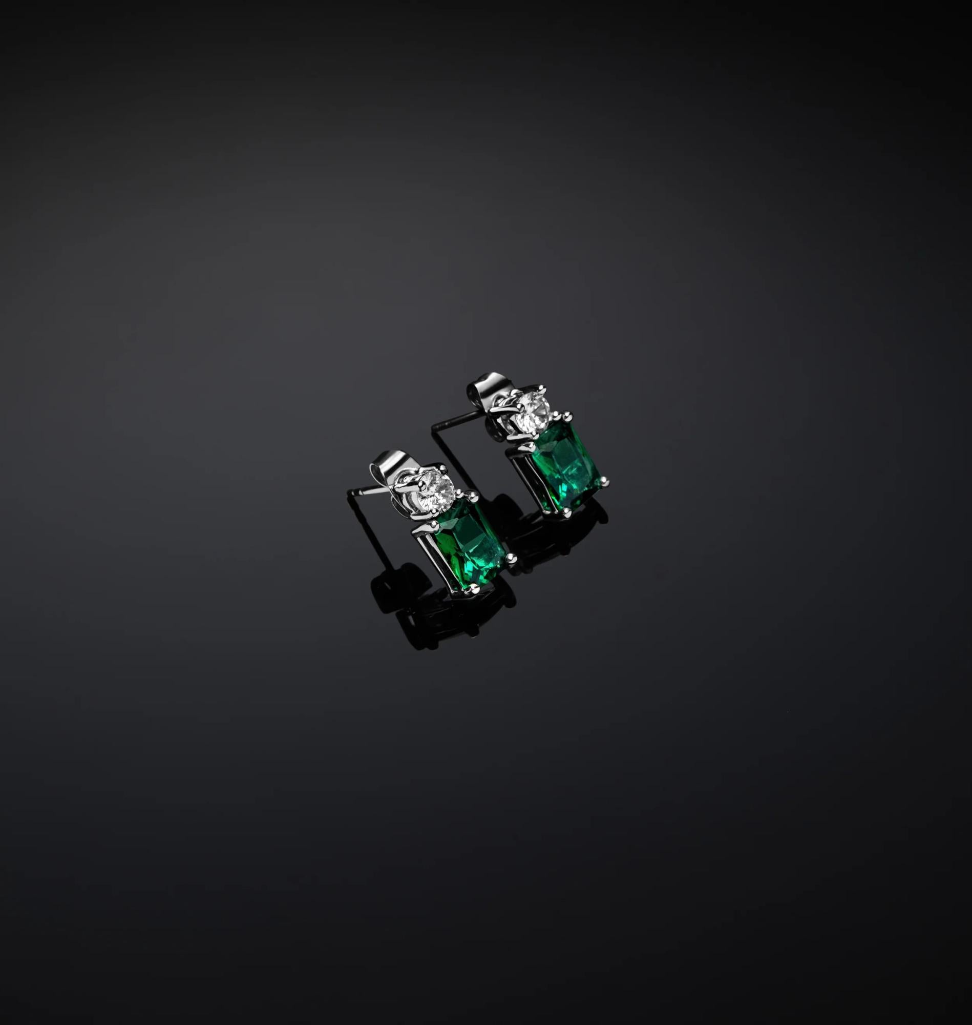 Orecchini placcati in argento con zirconi bianchi e verde smeraldo.
