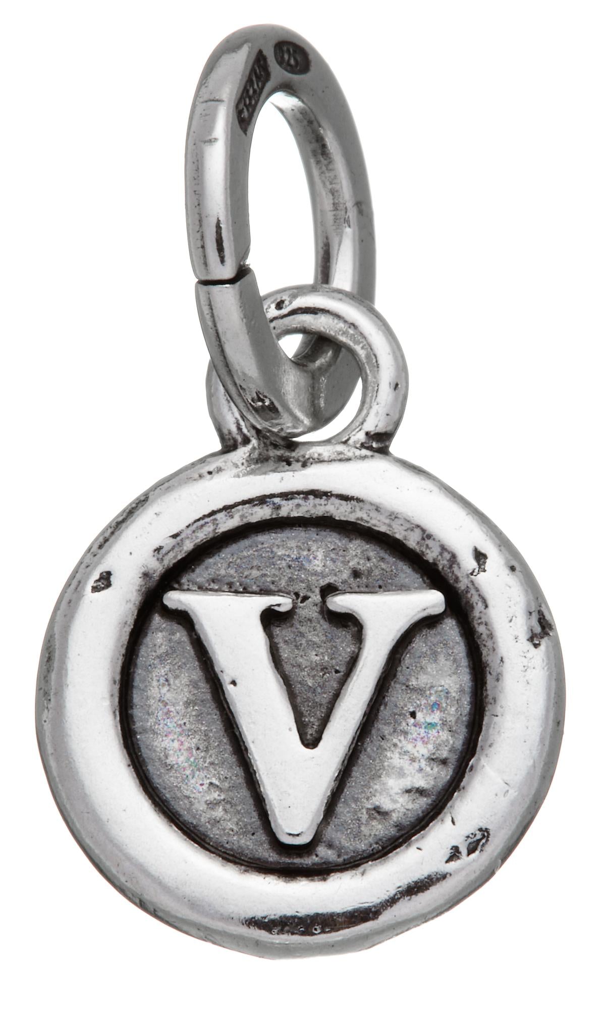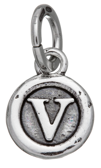 Charm Lettera Bottone "V" in Argento 925.