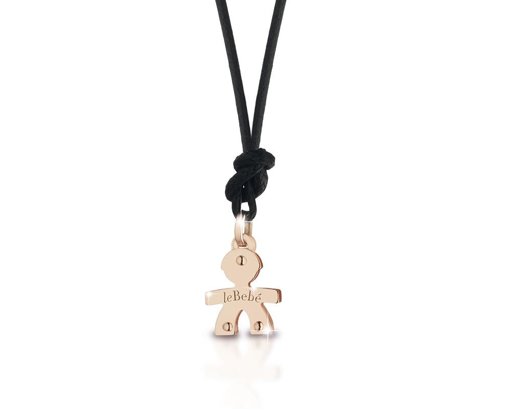 Accompagnata da un cordino nero fermato da un distanziatore in oro rosa.