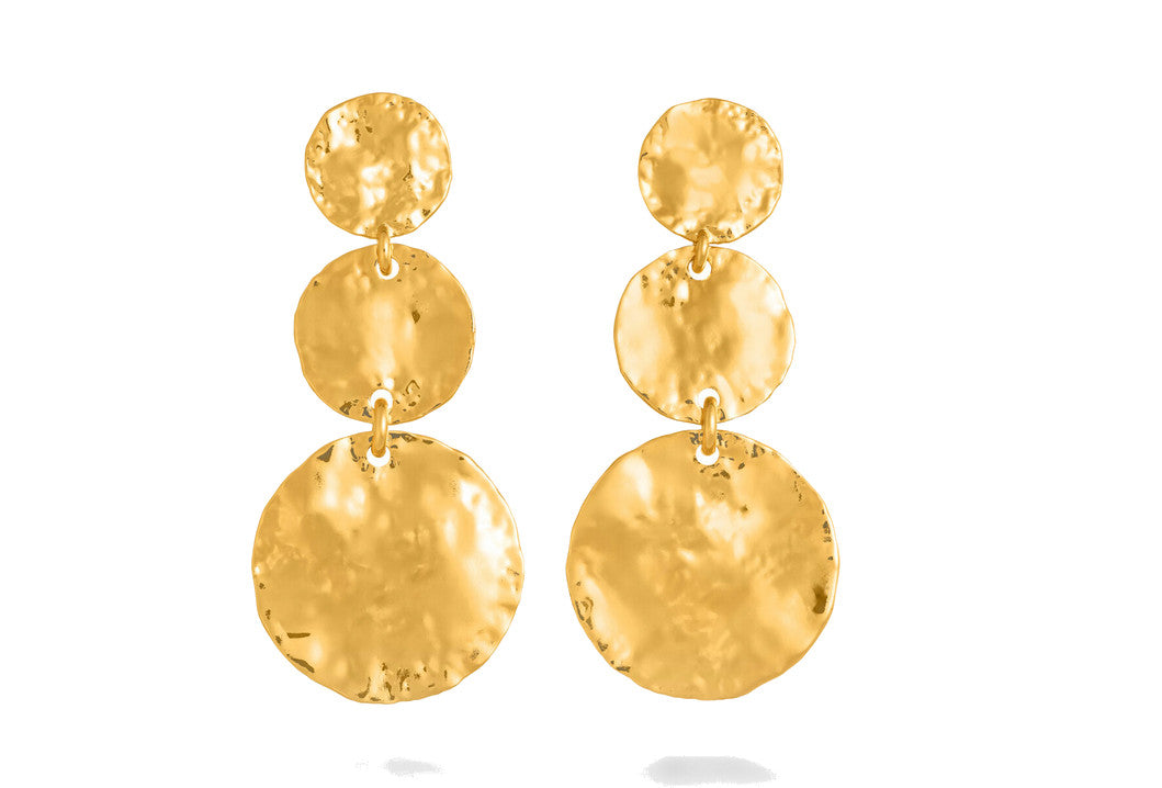 Materici, luminosi e dal fascino scultoreo: questi orecchini pendenti in bronzo dorato sono martellati a mano per esaltare al massimo la loro luce e la ricca texture superficiale. Realizzati con la tradizionale tecnica della fusione a cera persa, portano con sé tutta l'autentica artigianalità firmata Giovanni Raspini. Un accessorio d'impatto, ideale per completare look eleganti o aggiungere carattere a uno stile quotidiano.