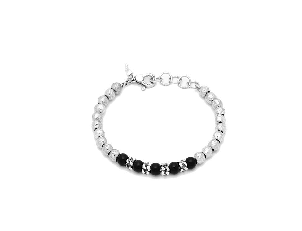 Il Bracciale Giovanni Raspini è un pezzo unico, finemente lavorato a mano in Italia con argento 925 e onice nera. La lunghezza di 20 cm è regolabile grazie alla chiusura con moschettone e maglie di regolazione. Semplice ed elegante, è il gioiello perfetto per qualsiasi occasione.