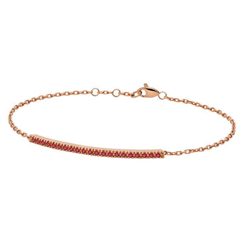 Bracciale paddle gioielli con barretta tennis in oro rosa 18 Kt e rubini rossi con una caratura totale di 0,20 ct. Il bracciale è in oro rosa con una lunghezza regolabile da 17 a 20 cm e chiusura a moschettone.