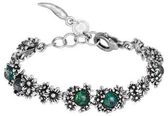 Bracciale Raspini in Argento 925, decorato con motivi floreali con micro margherite e intervallato da Agata verde.