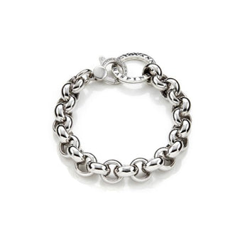 Bracciale Raspini realizzato in Argento 925. Classica catena modello Rolò di dimensioni importanti, il suo peso è di 50 Gr. Chiusura e finale di chiusura personalizzati Raspini.