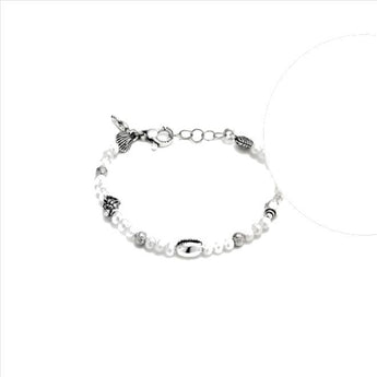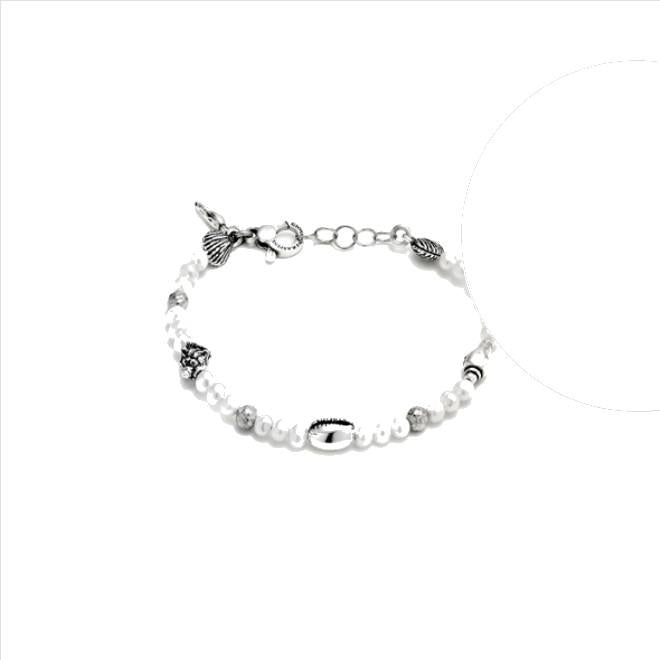Bracciale Raspini della collezione Sicily, realizzato in argento 925 e perle naturali di acqua dolce. La lunghezza è 19 cm.