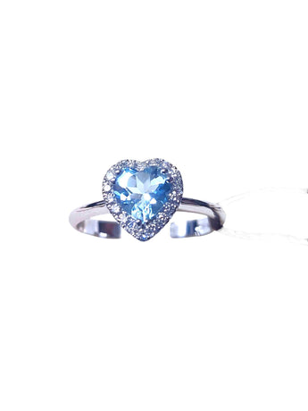 Anello in oro bianco 18 Kt. di gr. 3,20 e acquamarina taglio cuore Ct. 1,10 con diamanti a contorno di Ct. 0,15 qualità SI colore G